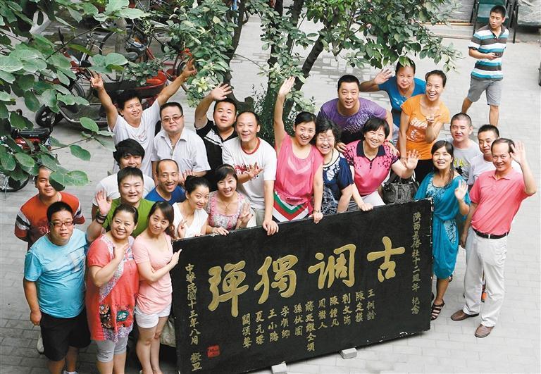 易俗社部分演职人员在1924年鲁迅先生为易俗社题写的“古调独弹”匾额前合影。