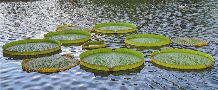 能一睹王莲的绰约风姿与傲人风范,我深感震撼!或许,受持续高温天气影响,今年陕西省西安植物园的王莲,叶片直径将超过2.91米。到那时,你可以带上亲朋好友来参观。幸运的话,还可以让小朋友或坐或站在王莲之上,体验体验奇妙的感觉。