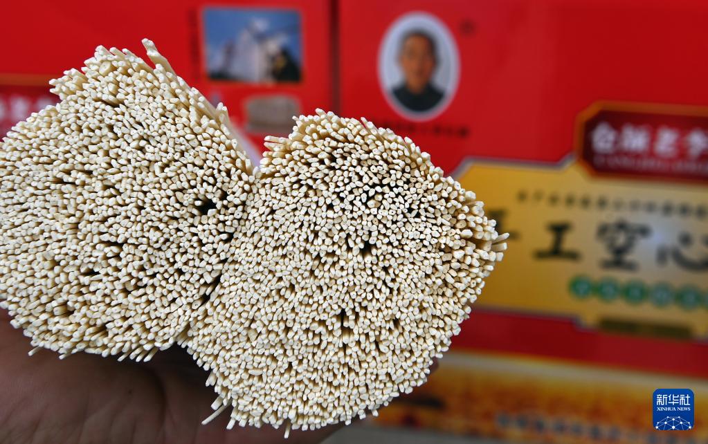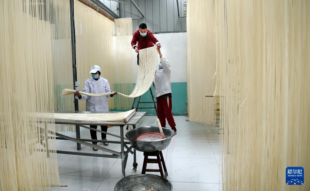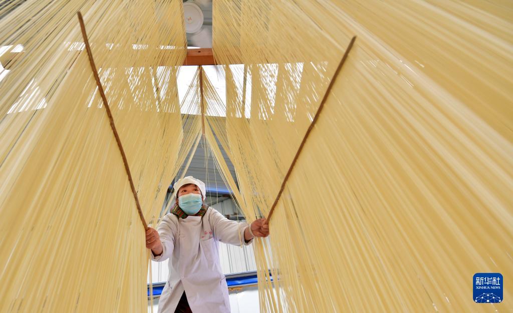 村民在李长满的老李家手工挂面专业合作社晾晒空心挂面(3月18日摄)。