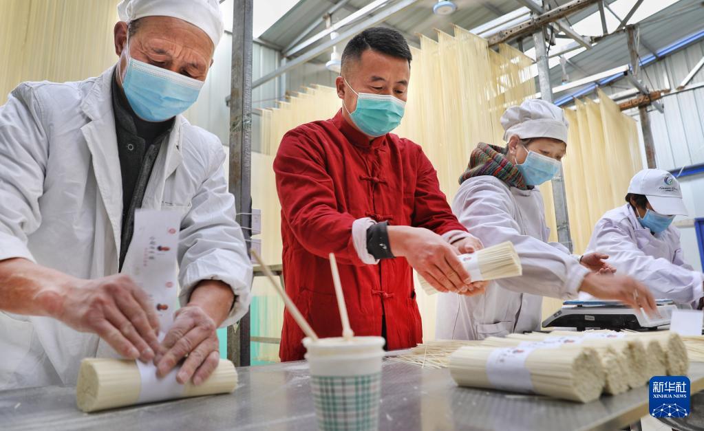 村民在李长满的老李家手工挂面专业合作社务工(3月18日摄)。