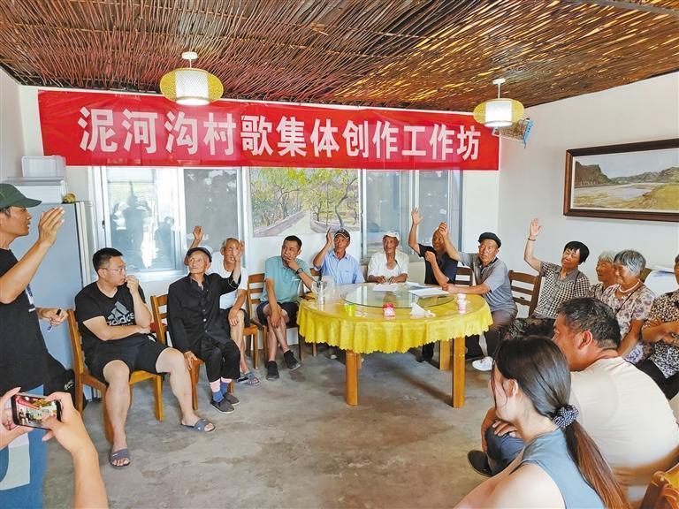 “作为一个泥河沟人,我感到非常自豪!”在村歌谱写现场,25岁的武敏说。武敏是西安理工大学环境设计专业在读研究生,言行间带着陕北女子特有的娇俏和利落,她这次回来是帮着村里设计民宿及乡村振兴发展规划的。