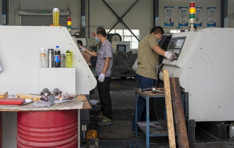 9月1日渭南晨锋机械有限公司工人正在进行机械加工