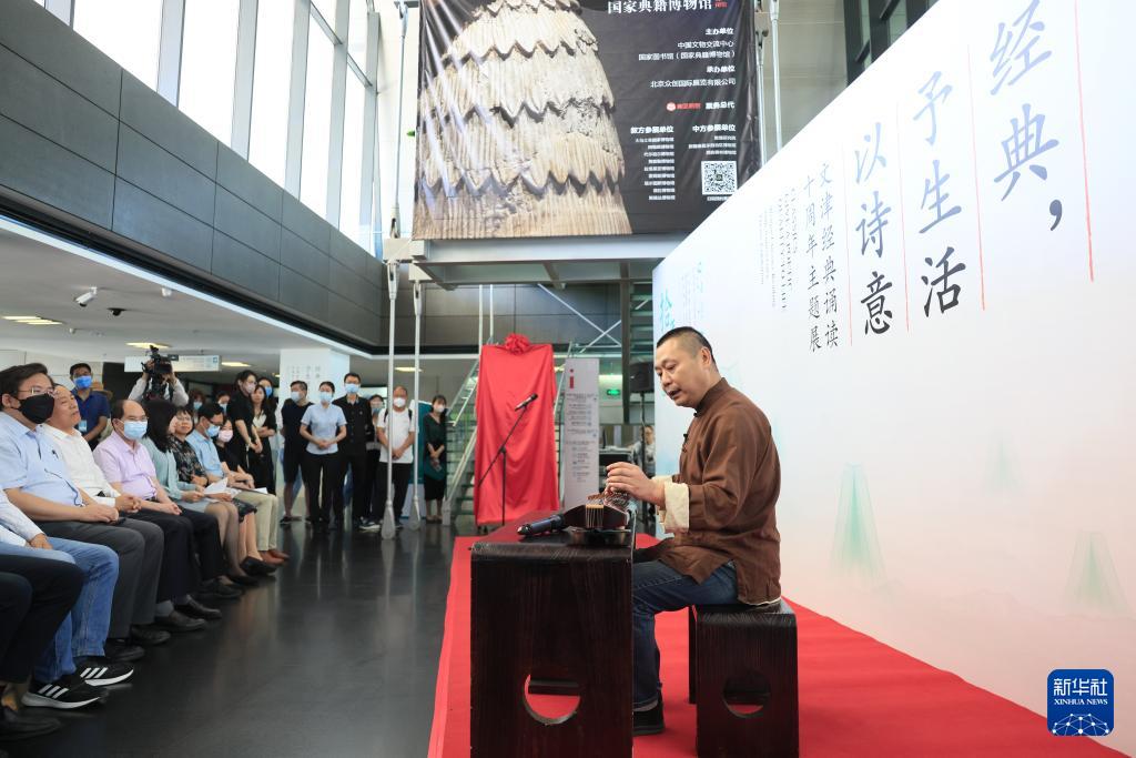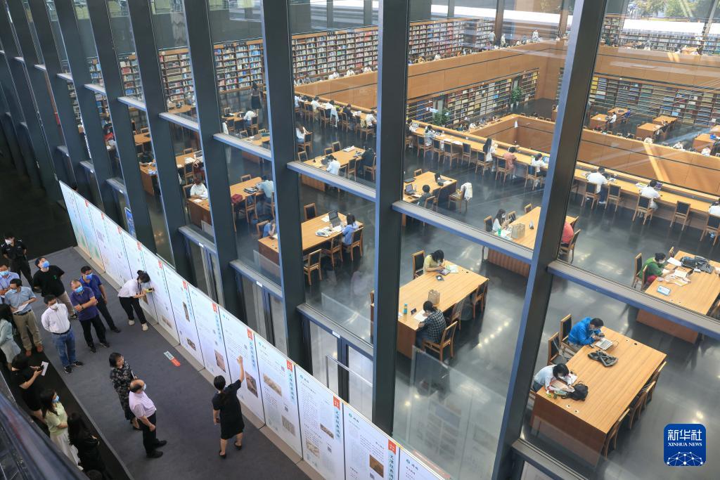9月7日,国家图书馆联合全国228家图书馆共同举办的“经典,予生活以诗意——‘文津经典诵读’十周年主题展”在国家图书馆开幕。(新华社记者 殷刚 摄)