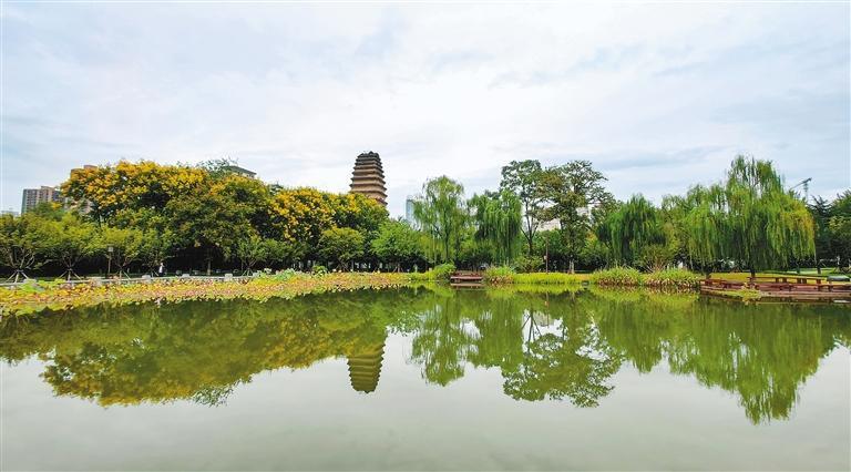 9月19日,细雨中的西安博物院空气清新,秋景如画。(记者 窦翊明 摄)