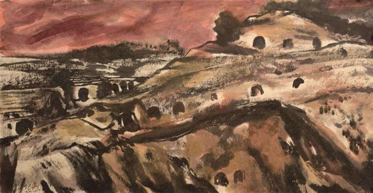 吴为山《窑洞红霞》122×63cm国画。