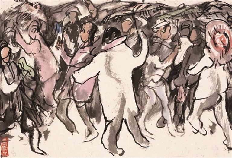 王潇《秧歌》68×23cm国画。