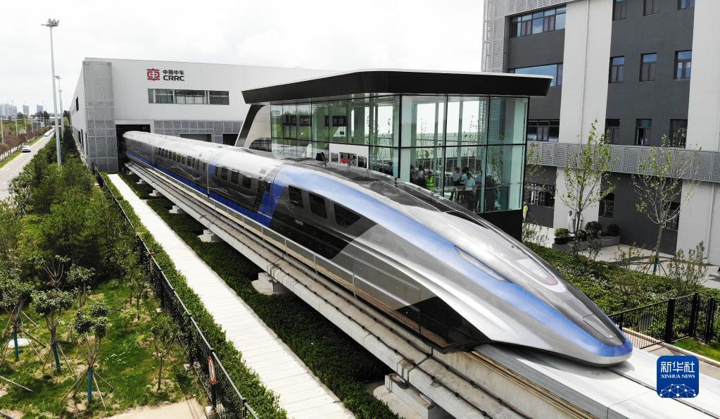 这是在山东青岛拍摄的时速600公里高速磁浮交通系统(无人机照片,2021年7月20日摄)。新华社记者 李紫恒 摄