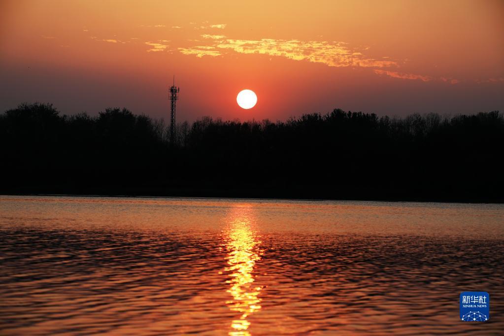 这是9月17日在山东省临沂市郯城县沂河畔拍摄的落日。