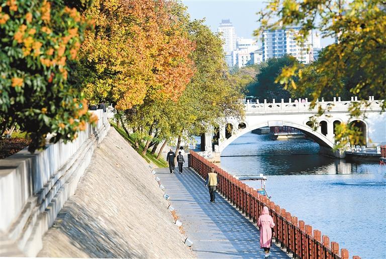 图①:10月31日,古城迎来晴好天气,市民纷纷走到户外,欣赏深秋美景。 记者 翟小雪 摄