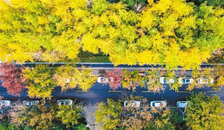 图②图③:10月31日,高新三路新纪元公园周边的林带在阳光下宛如一幅美丽的画卷。 首席记者 王健 摄