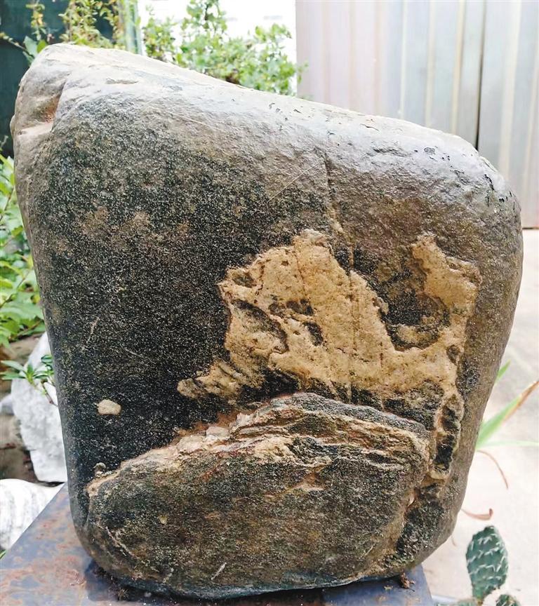 表哥收藏的趣石之一,上面的黄色纹理,像回首望天的梅花鹿。