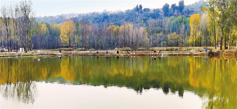 十月二十九日,西安市长安区浐河河畔,秋色渐浓,秋景如画,吸引了市民前来赏秋、休闲、打卡、拍照。通讯员 杨永乾摄