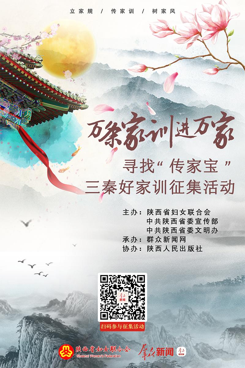 活动发出“秦人立家规·万户传家训”行动倡议,全面启动“传家宝”三秦好家训征集活动。活动期间,可关注“秦女子之声”微信公众号,点击菜单栏“服务微家”,进入首页“精品活动”参与“万条家训进万家——寻找‘传家宝’三秦好家训征集活动”线上报名。