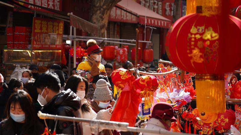 1月28日,元宵佳节前夕,西安市韦曲老街人头攒动,集市上各类花灯精彩亮相,既有手艺人现场制作的传统灯笼,也有科技感十足的现代花灯。不少游客前来购买元宵、灯笼,年味与烟火气十足。