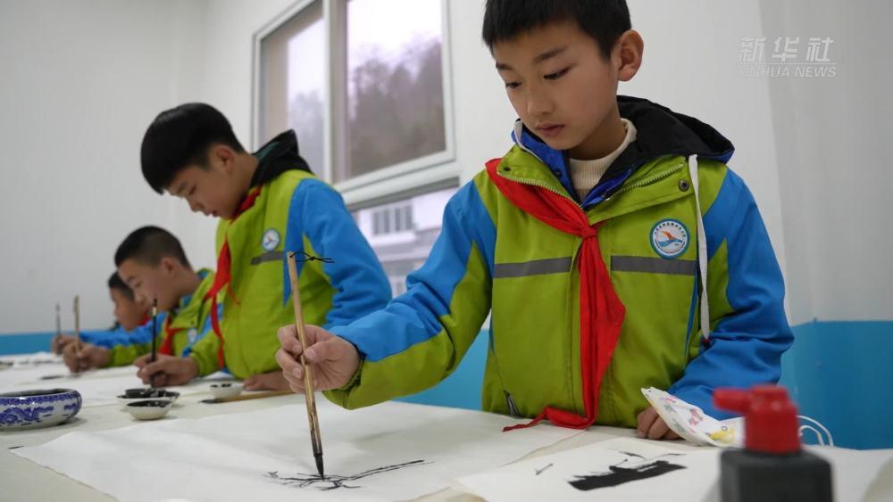 汉滨区双龙镇中山村大学生村干部汪子文用所学美术专业知识帮助山里的孩子们画出家乡之美,在艺术教育中获得感受美的能力。