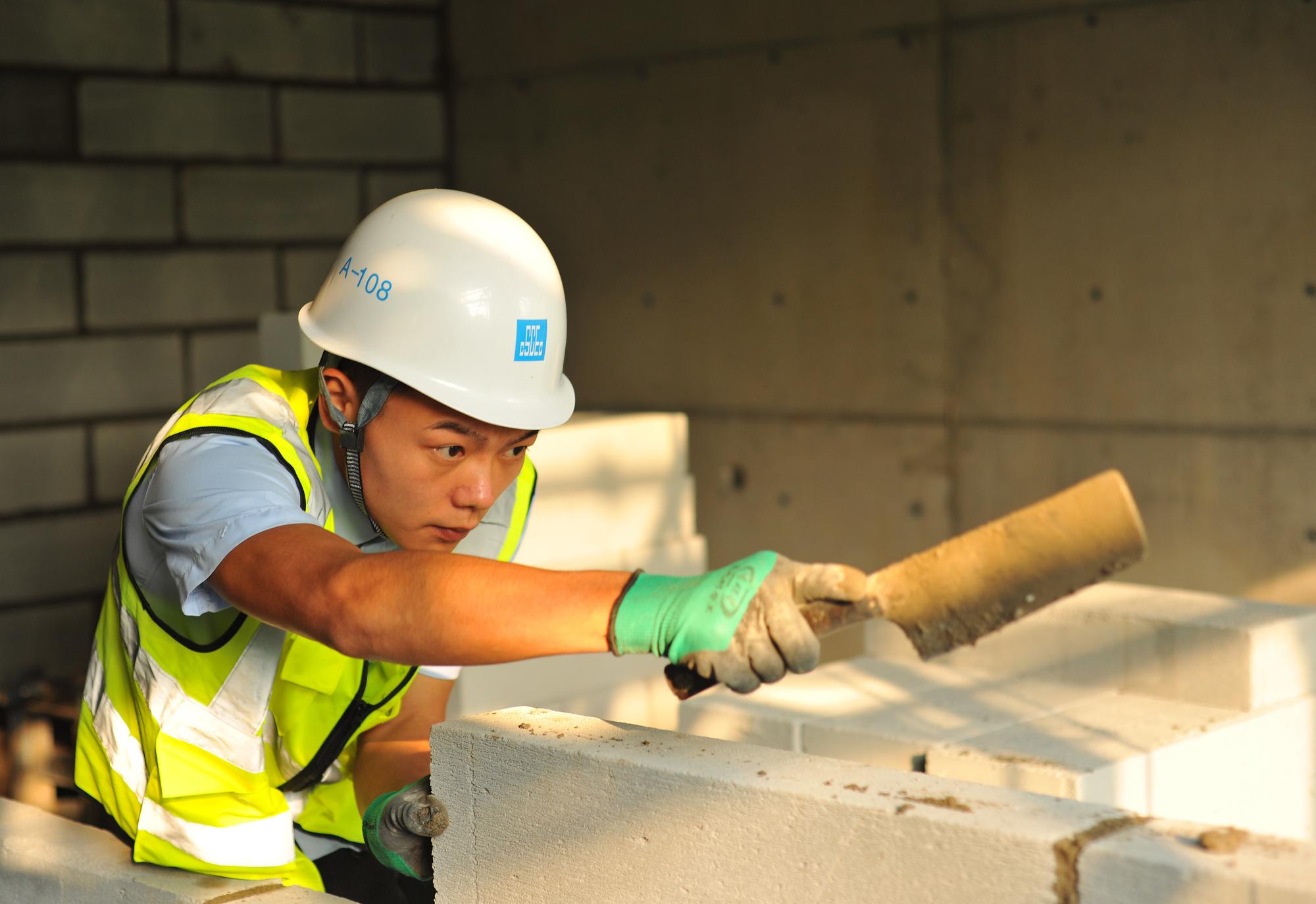 邹彬砌的墙,横纵两向的灰缝能控制在1厘米标准之内,砖面干净,不沾水泥,他还是第43届世界技能大赛砌筑项目优胜奖获得者。接受记者采访时,邹彬仍在工地上工作。“我现在在长沙机场改扩建工程T3航站楼项目上,驻扎了一年了,去年两会结束我就过来了。”