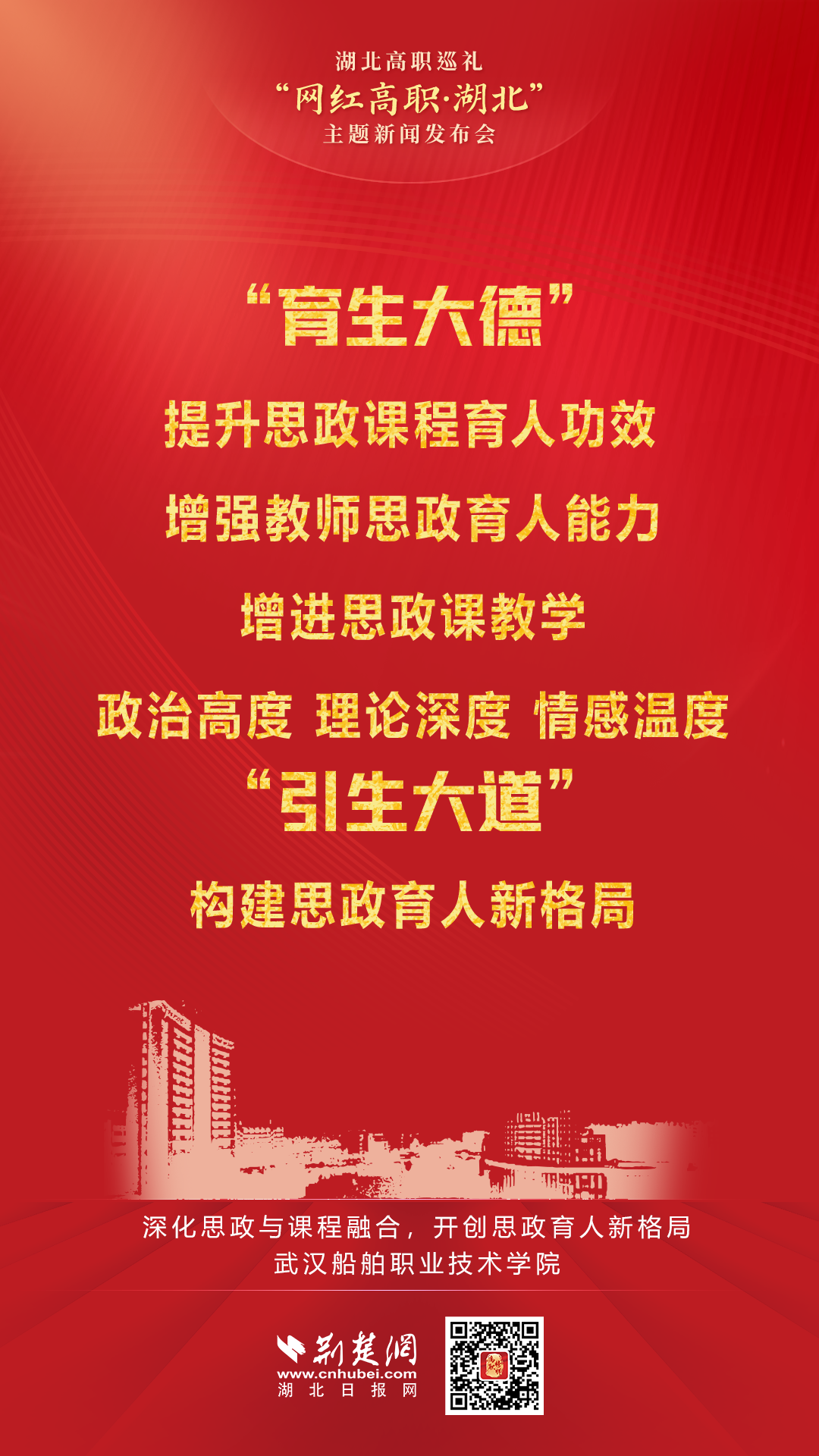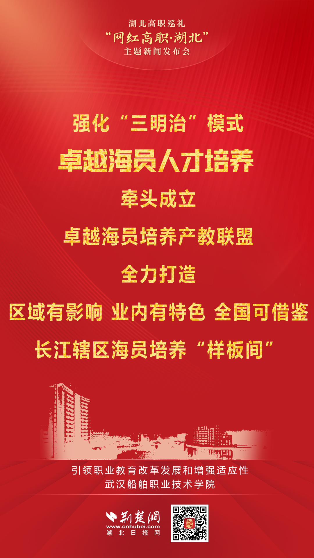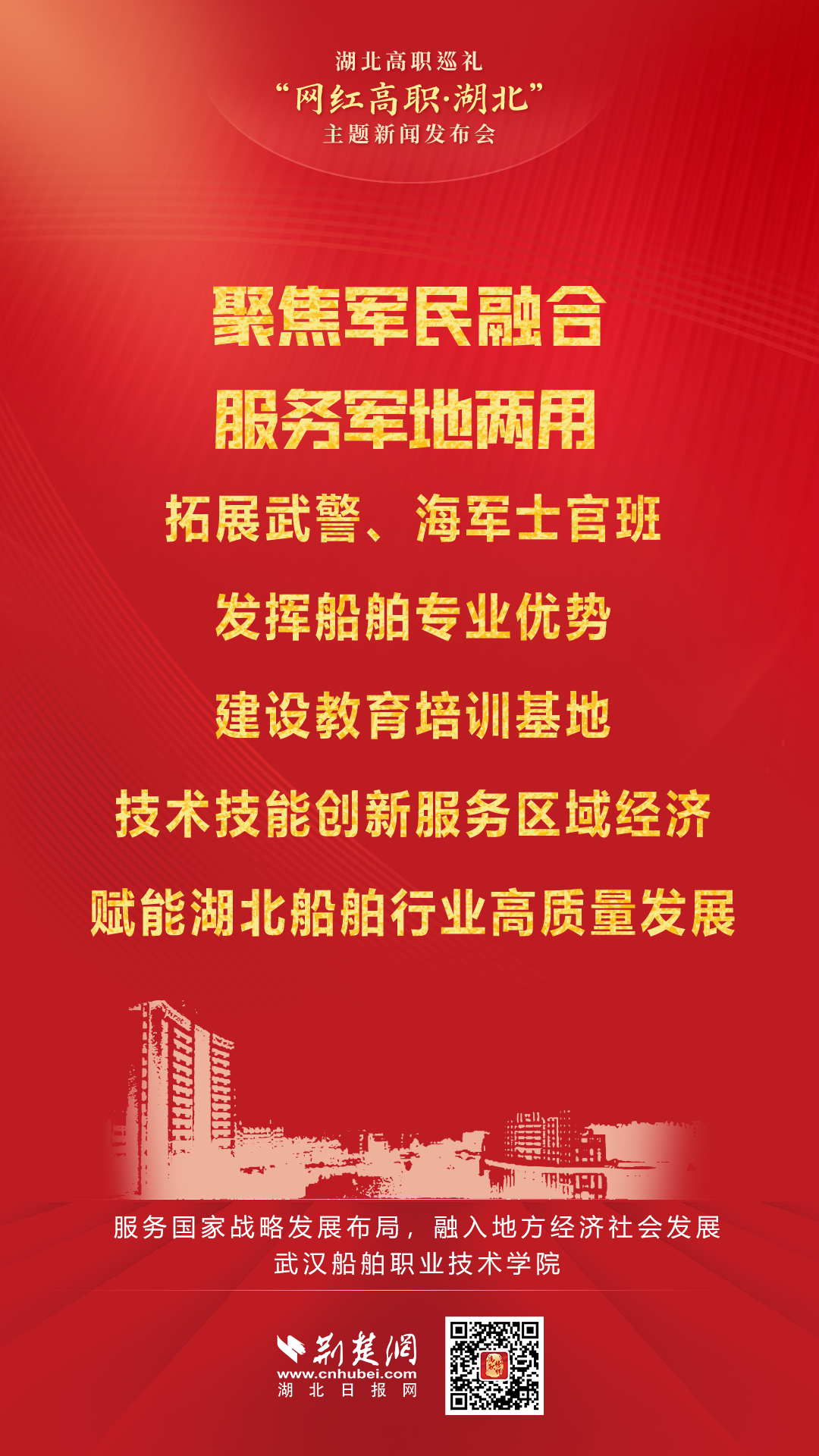荆楚网(湖北日报网)讯(记者齐一璇、许文秀 通讯员於建伟、陈冲)奋力建设海洋国防“工匠摇篮”;强化“三明治”模式卓越海员人才培养;聚焦军民融合,服务军地两用……5月12日,“第七届全国主流融媒体湖北特色高职行”大型主题活动走进武汉船舶职业技术学院,40余家全国主流融媒体聚焦该校“船”的情怀,立校之本、强校之基、育才之魂,记录一代代船院人爱国之心、报国之行的闪光时刻。