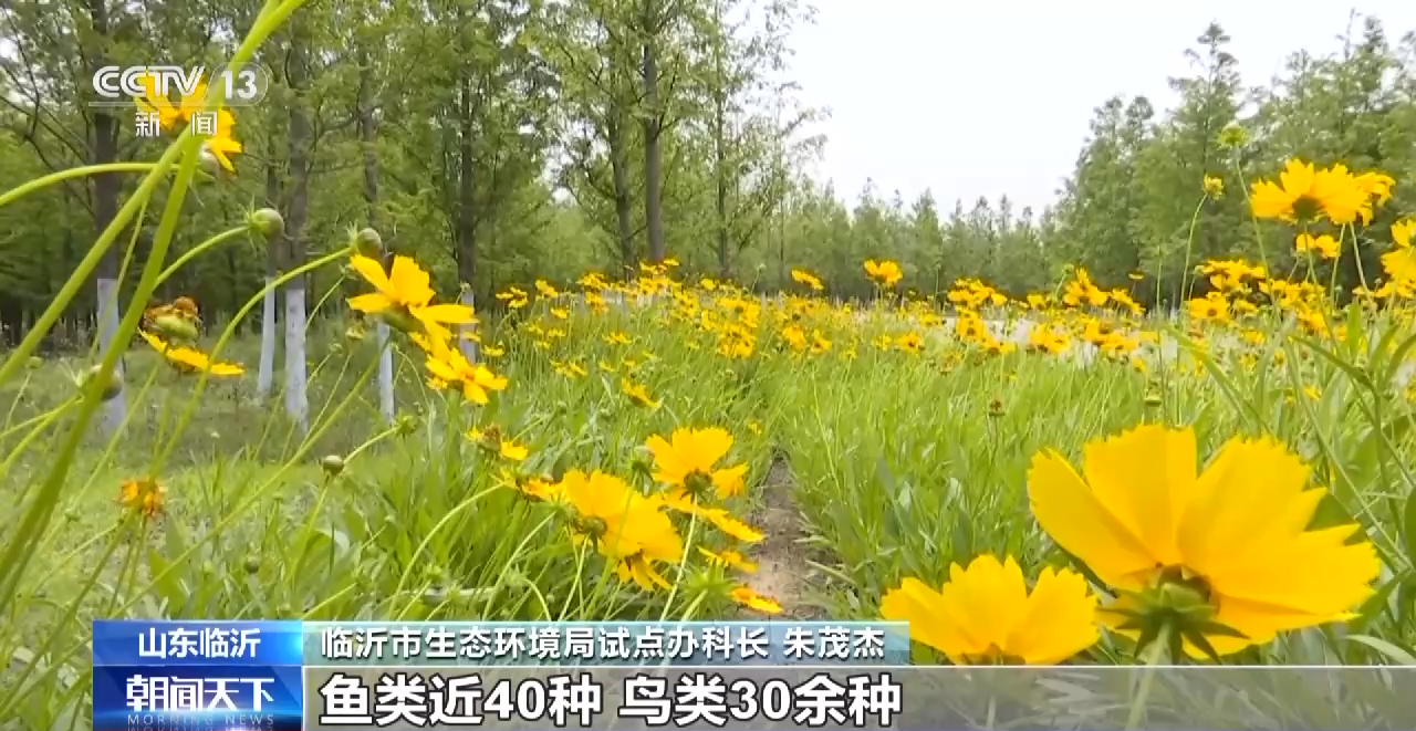 山东省临沂市生态环境局试点办科长 朱茂杰:比如说我们沂水县国家湿地公园,不仅将污水处理厂的出水水质提升到了地表水Ⅳ类,而且对水生态恢复作用十分显著,现在已有植物近300种、鱼类近40种、鸟类30余种。