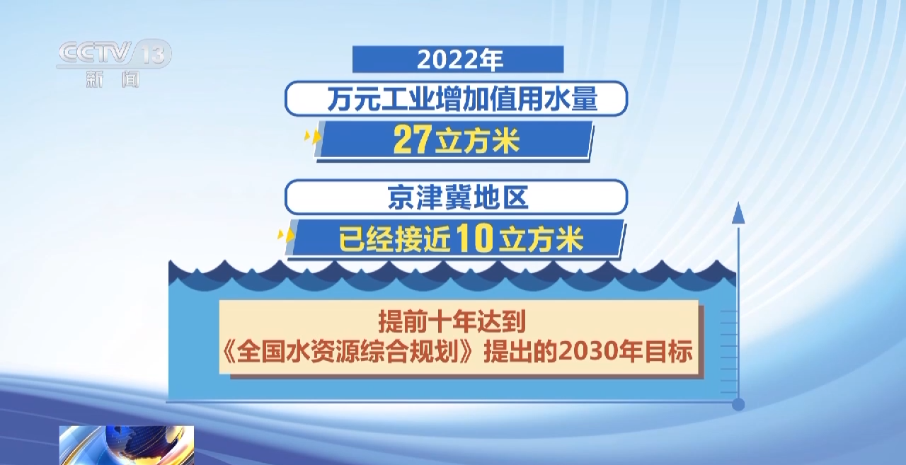我国从“十二五”开始施行“最严格的水资源管理制度”。2021年,全国万元工业增加值用水量较2012年下降55%,2022年万元工业增加值用水量27立方米,京津冀地区已经接近10立方米,提前十年达到《全国水资源综合规划》提出的2030年目标。