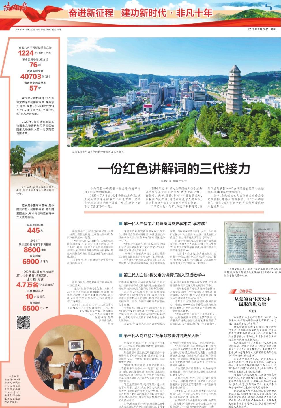 一是报道好、宣传好、阐释好习近平新时代中国特色社会主义思想。持续在头版开设“在习近平新时代中国特色社会主义思想指引下”等专题专栏,推动贯彻落实习近平新时代中国特色社会主义思想在三秦大地走深走实。4月至5月开设“足迹·温暖的回响”专栏,回访总书记三次来陕考察的梁家河村等25个点位,再现感人场景,重温暖心话语,呈现发展变化。