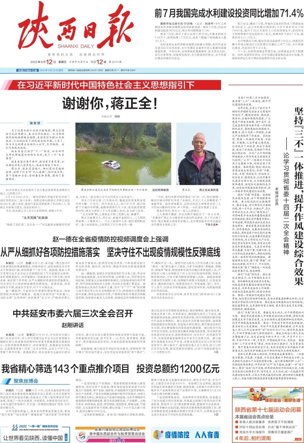 开设“把雷锋精神代代传承下去”“学习‘三秦楷模’”等专栏,做好2021年度学雷锋示范点和岗位学雷锋标兵、我省“三秦楷模”宣传报道,刊发《这个学雷锋团队,今年8岁了》《让耀州窑光大于世——记“三秦楷模”禚振西》等稿件。8月12日,陕西日报头版头条、重庆日报一版导读,联动报道重庆籍来陕务工人员蒋正全“用生命托举落水女孩不幸牺牲”的感人事迹,引发渝陕两地广泛关注。通过报道一批先进典型人物,弘扬正确道德观念,传递真善美,维护社会公德。