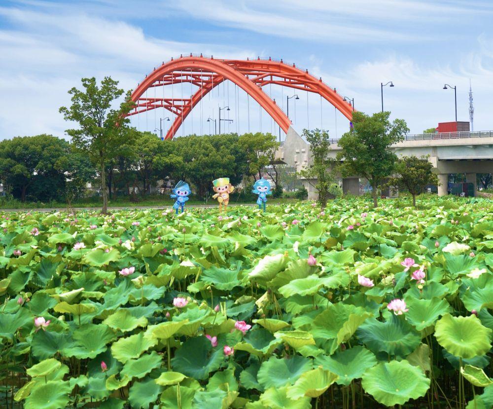 图为临平区运河街道新宇村千亩荷塘一角。
