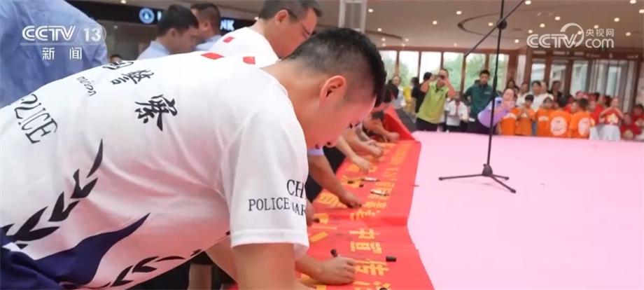 在江西省樟树市,民警、青少年和禁毒志愿者们用自编自导自演的精彩节目给现场观众上了一堂生动的禁毒知识课。参加活动的200多人在条幅上签名,许下远离毒品、珍爱生命的郑重承诺。