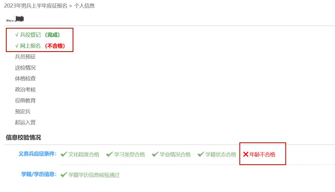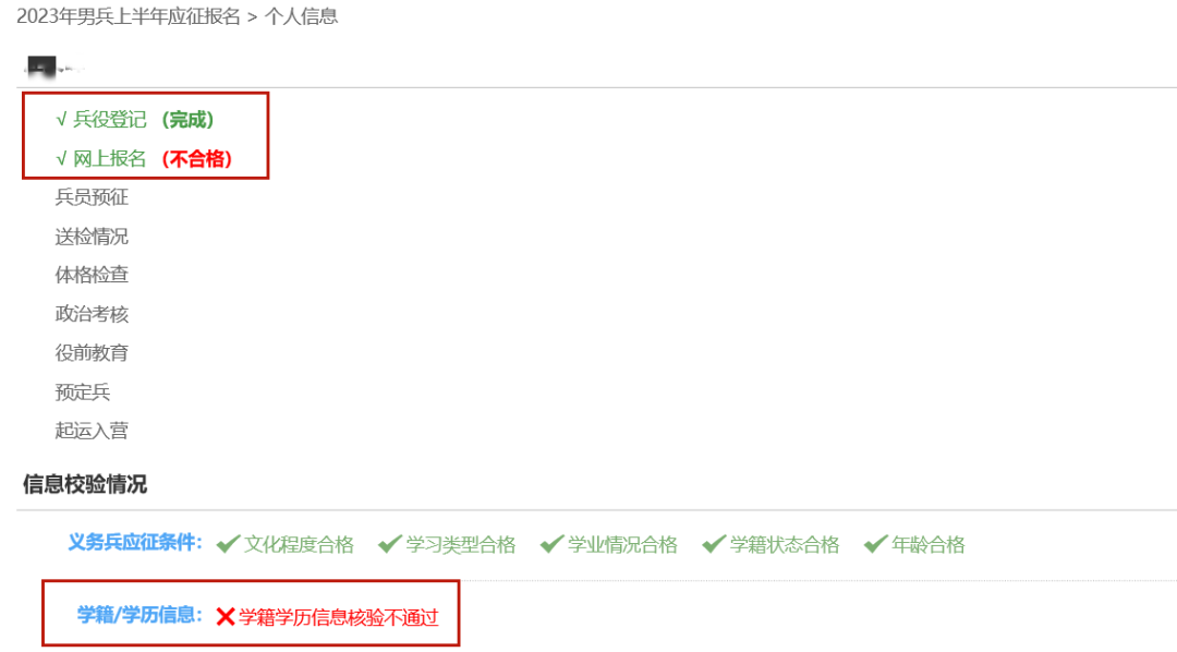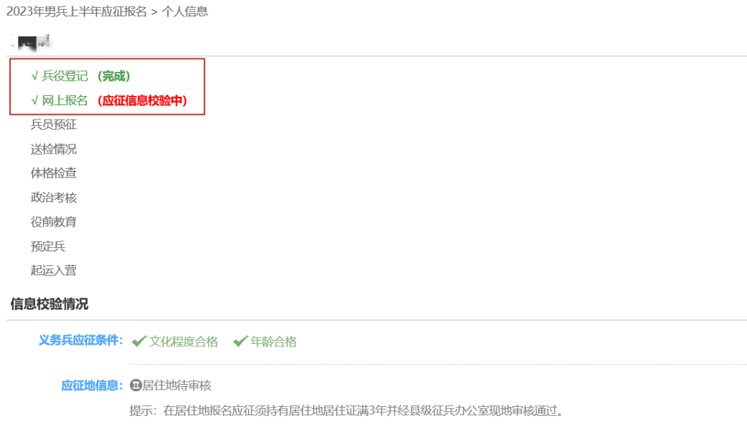 登录全国征兵网,可直接查看报名是否完成。一般可以分为:完成、不合格和应征信息校验中等情况。