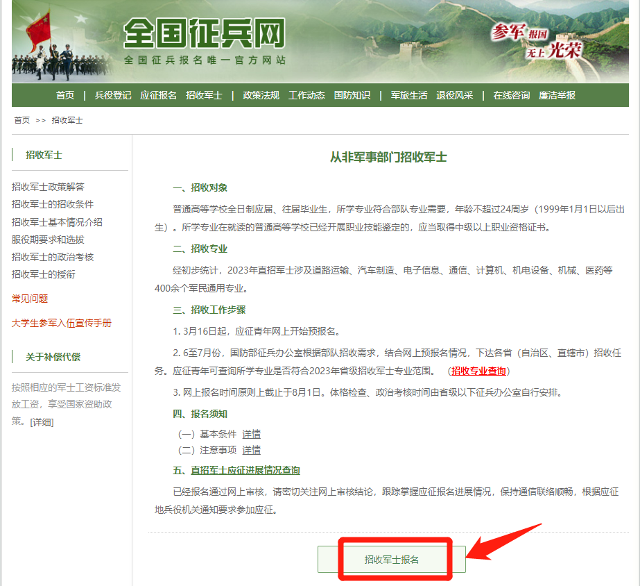 ★提醒:报名直招军士的应征青年,因招收军士计划限制,未能被确定为直招军士的,还可根据应征地兵役机关安排参加义务兵征集。
