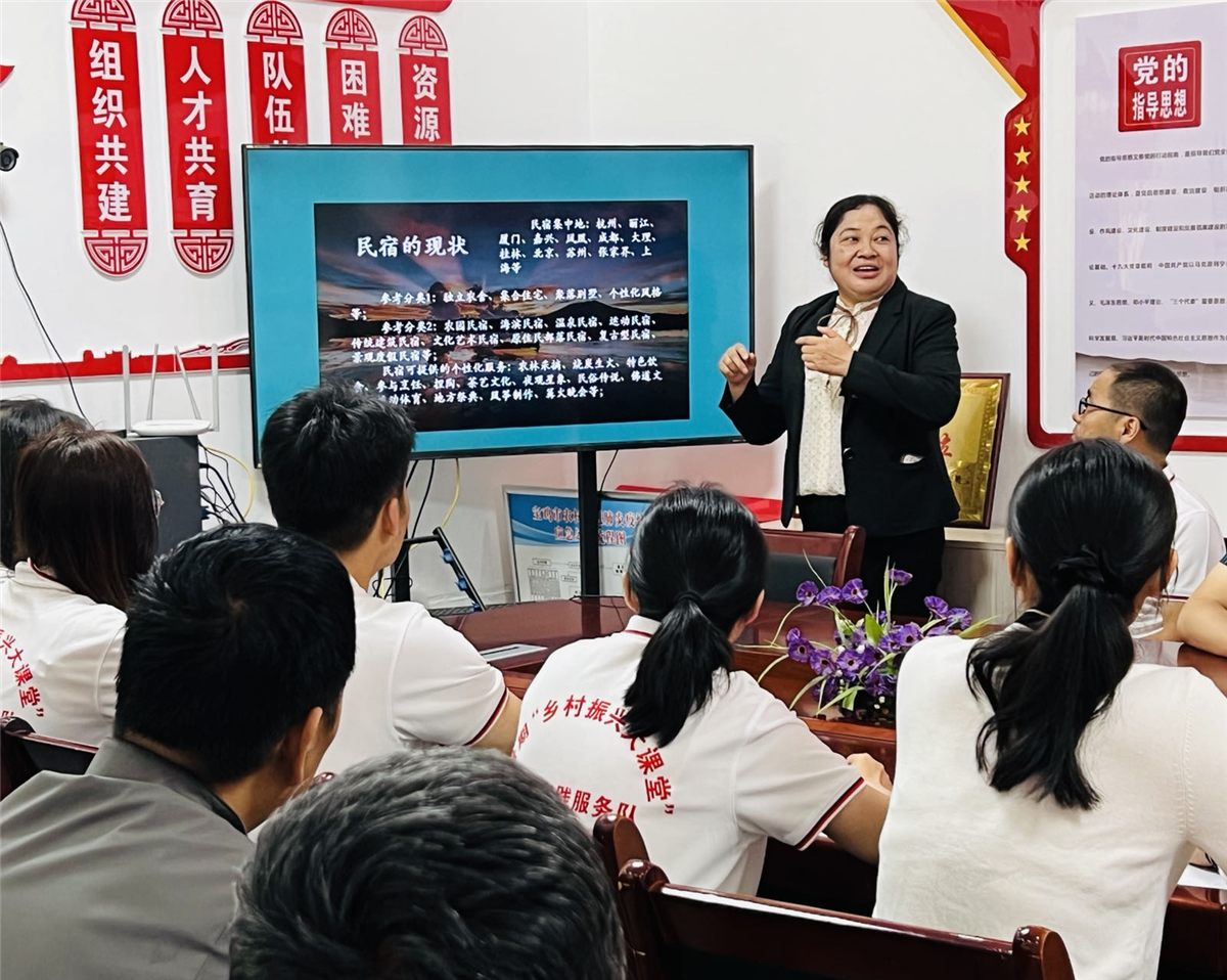 ——举办一场产业培训,助力产业振兴。杨凌职院旅游与管理学院副教授樊雅琴、李静针对高码头村“乡村+旅游”、“生态+旅游”产业发展需求,依据高码头资源现状,面向高码头党支部班子成员、合作社经营代表与村民代表分别就民宿发展规划与第三产业接待服务开展两场产业培训,为高码头村进一步扩大游客承载接待量助力增智。
