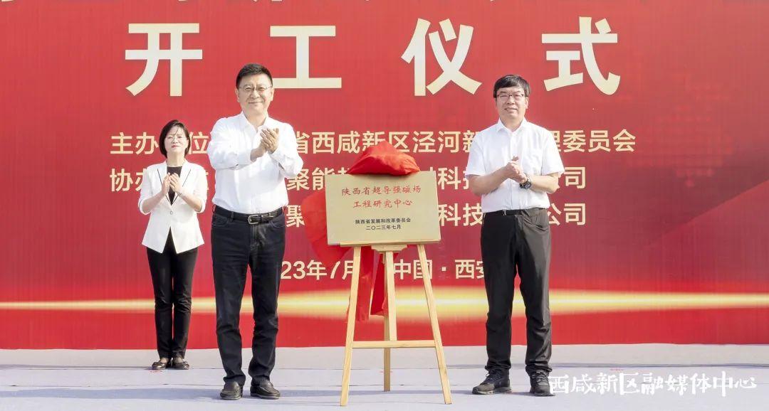 活动现场,西安市副市长孟浩,中国工程院院士、西北有色金属研究院党委书记、院长张平祥共同为项目“陕西省超导强磁场工程研究中心”揭牌。西咸新区党工委副书记李娴宣布项目开工。西咸新区党工委委员、泾河新城党委书记张宏伟,西部超导公司党委书记、董事长冯勇分别致辞。泾河新城党委副书记、管委会主任薛峰主持开工仪式。
