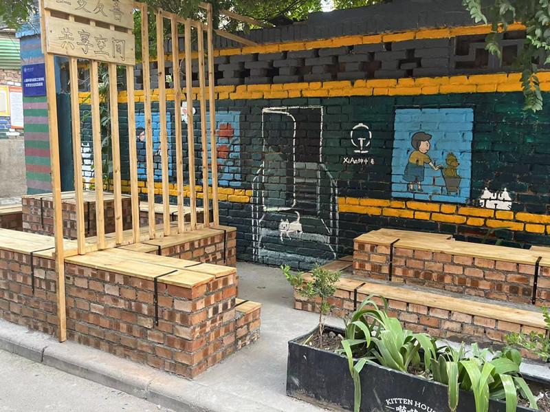 色彩复古的文化展示墙,形态各异的猫咪手绘图案,可供社区居民休憩的共享空间……或时尚绚丽,或复古文艺,或可爱有趣,在西安市新城区解放门街道坤中巷,一些原本有些杂乱的社区空间经过改造优化,成为一道别具特色的风景线。