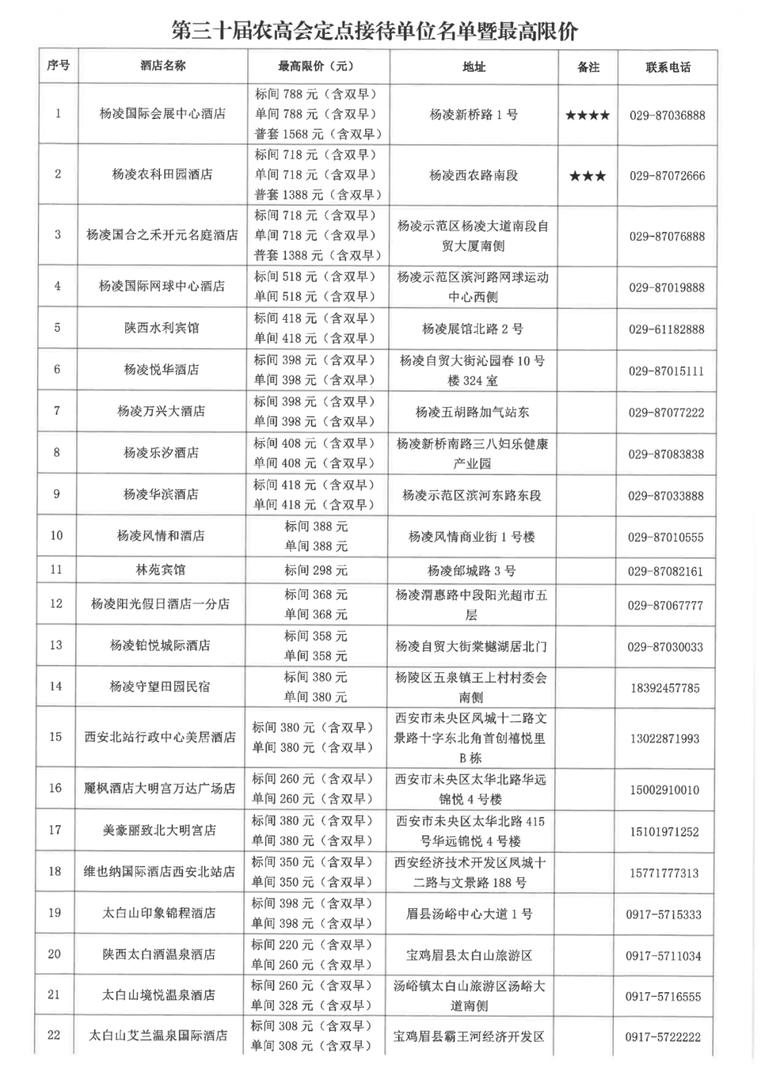 确定杨凌国际会展中心酒店等22家单位