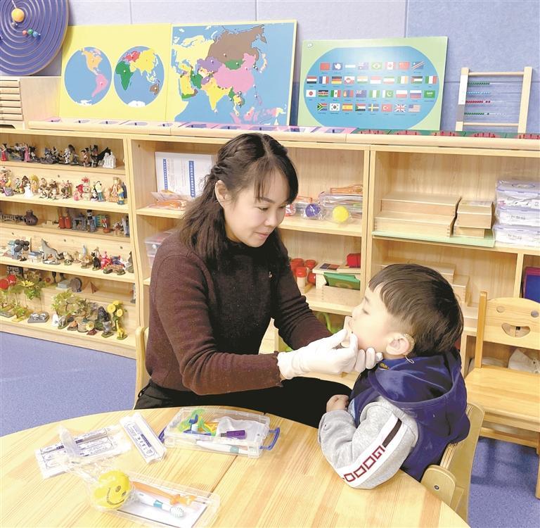 听力语言康复教师在开展教学活动。