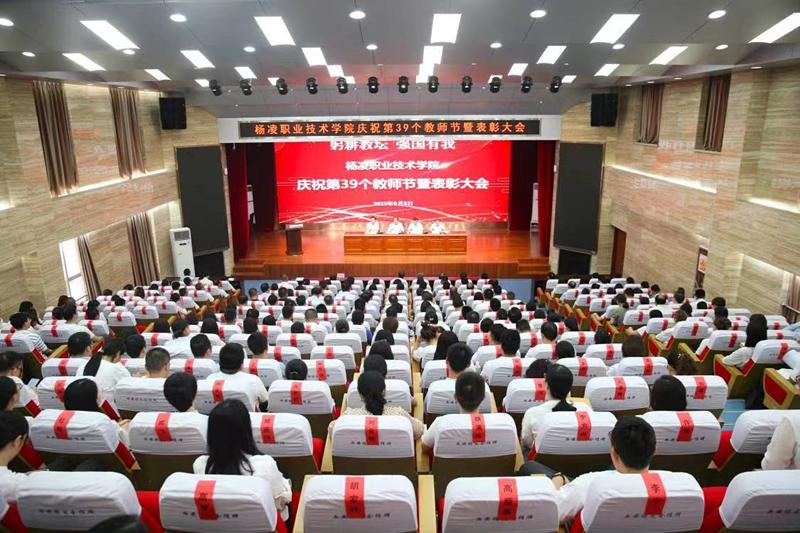 9月8日下午,杨凌职业技术学院庆祝第39个教师节暨表彰大会在南校区思辨堂举行。学校党委书记王周锁,党委副书记、纪委书记王勇胜,副校长蒋平江、胡俊鹏,受表彰教师代表,各二级学院教师代表,各二级学院(部)党总支书记、院长(主任),机关处室负责人参加了大会。大会由王勇胜主持。