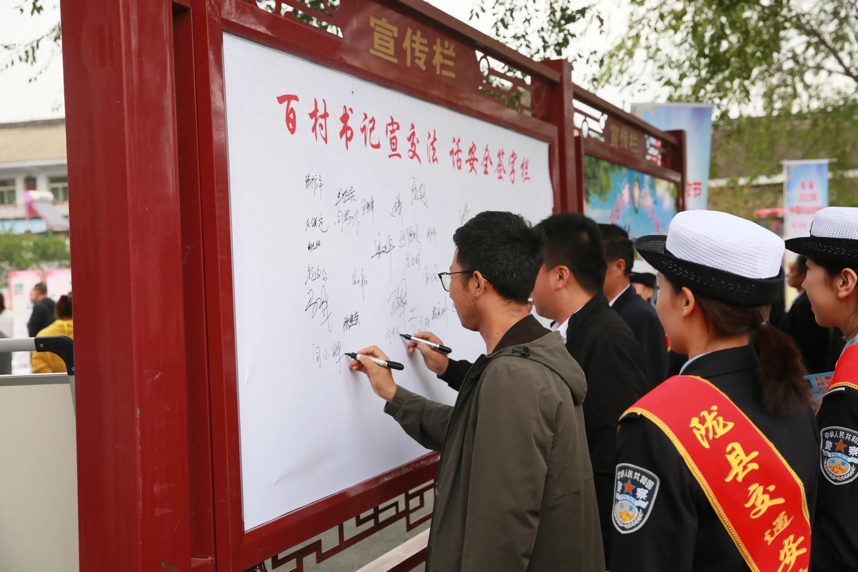 活动中,八渡镇桃源村村支部书记张振平宣读“交通安全倡议书”,全县104个行政村支部书记带头签名承诺自觉遵守交通法规,安全文明出行,为道路交通安全畅通贡献自己的力量。
