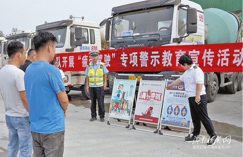 9月18日,华阴市公安局交警大队会同交通运输局来到重点企业,开展“疲劳驾驶”专项警示教育宣传活动。 通讯员 赵江峰 摄