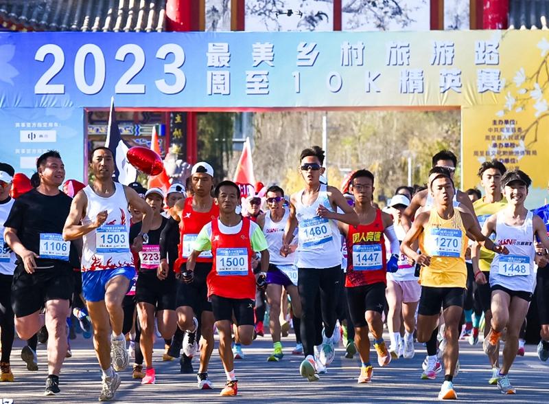 11月19日,2023最美乡村旅游路周至10K精英赛举行,共有来自省内外的1200余名选手参赛。这次比赛既是西安市周至县近年来举办的规模最大的路跑赛事,也是以“体育+旅游”的方式助力乡村振兴的积极举措。