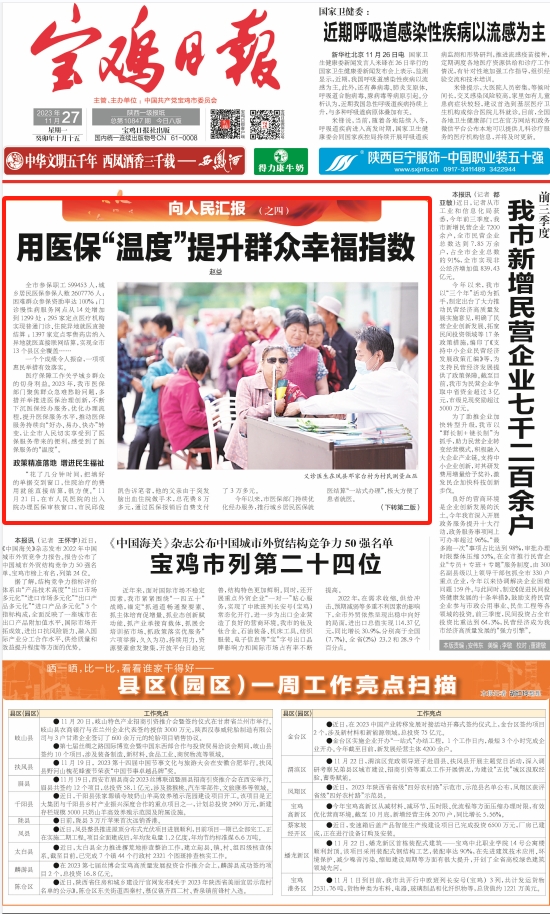 悠悠万事,民生为先。今年以来,全市医疗保障部门的干部职工主动担当、积极作为,持续优化医保公共服务,提升经办管理效能,拓展医保服务的深度,彰显医保服务的温度,提升医保服务的速度,谱写了宝鸡医保惠民、便民、利民新篇章。