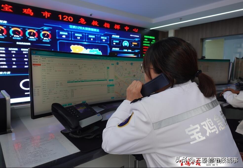 “您好,请告诉我具体位置,病人现在什么症状?”“请保持镇定,急救人员马上到!”记者在宝鸡市120急救指挥中心看到,接线员有序应对着一个个急救电话,大屏幕上显示着患者位置、急救车行进状况等信息。