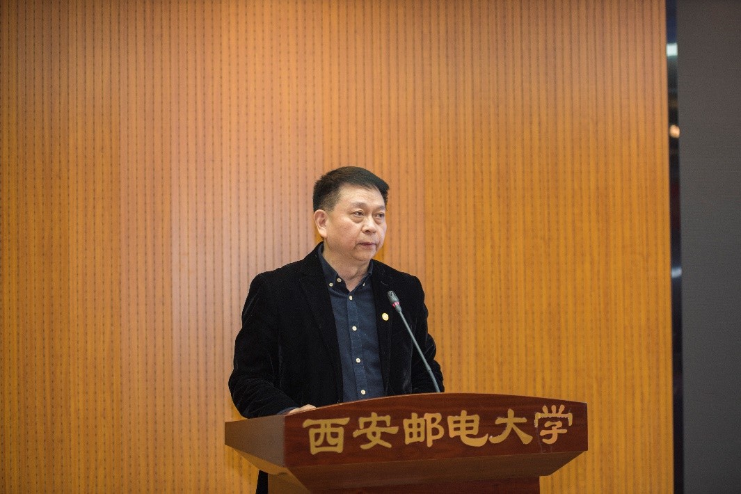 甘晖在致辞中表示,数字经济是继农业经济、工业经济之后的主要经济形态,已经成为推动生产方式、生活方式、治理方式变革的重要力量,哲学社会科学的高质量发展必须紧紧抓住数字技术的时代机遇和数字技术新动能,不断推进知识创新、理论创新、方法创新,实现中国式现代化自主的知识体系创新与建构。他指出,省社科联作为全省哲学社会科学领域学术性团体的联合组织,是省委、省政府联系全省社科界的桥梁和纽带。希望西安邮电大学在前期取得丰硕成果基础之上,继续加强与省社科联的业务联系,积极参与承担省社科联组织的关于数字经济理论研究、学术交流、社科普及等各项活动,共同推进陕西数字经济高质量发展,为全面构建中国特色哲学社会科学体系做出新贡献。