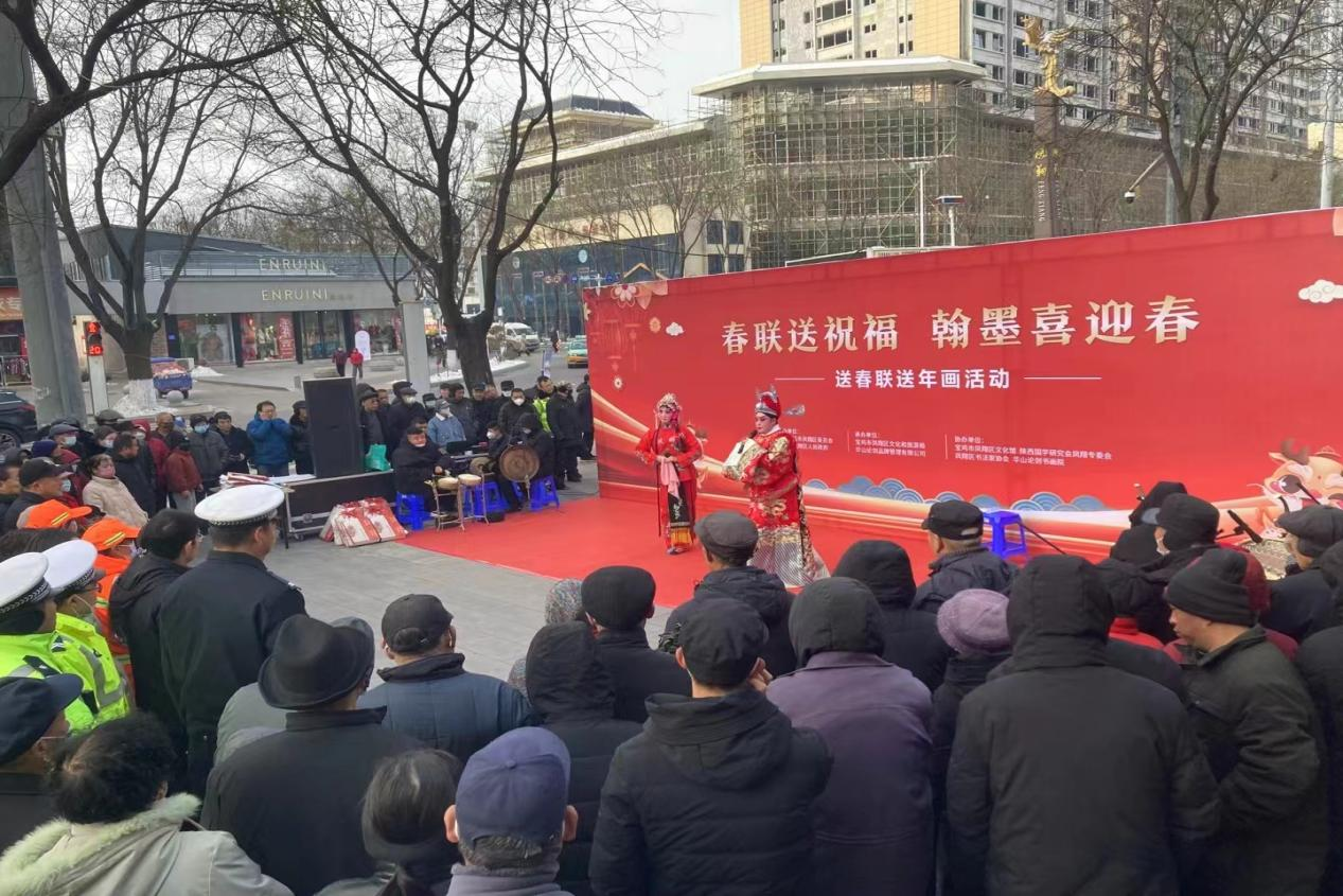 春节将至,年味渐浓。1月24日,凤翔区政府门前广场上,秦声悠扬、人头攒动,凤翔区“春联送祝福 翰墨迎新春”送春联送年画活动在这里举行。书法家现场挥毫泼墨,一张张寓意吉祥的年画、一幅幅红彤彤的春联送到市民群众手中,送去新春祝福。