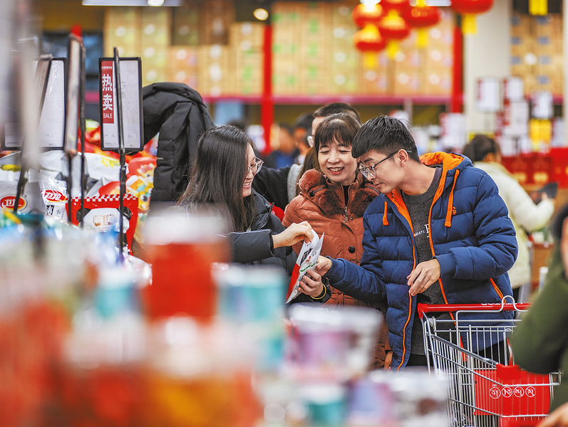 1月21日,渭南城区一超市内,市民正在选购年货。春节临近,我市消费市场日趋兴旺,各大商场和购物中心客流显著提升。在节日氛围和各类促销活动带动下,居民基本生活消费平稳增长,年货、日用品等商品需求升温。