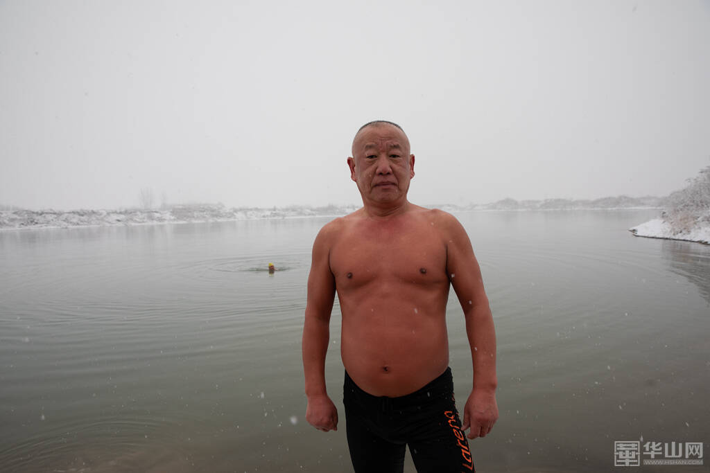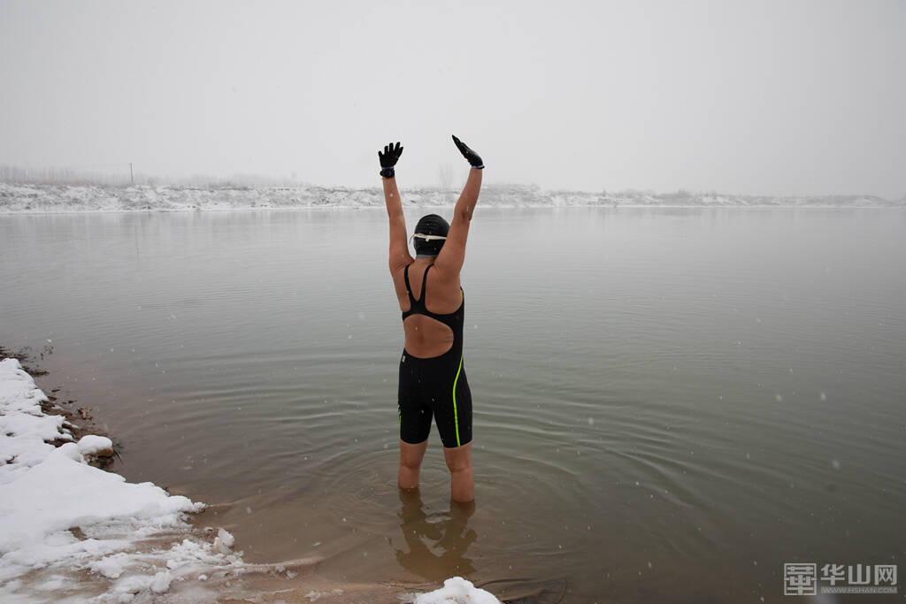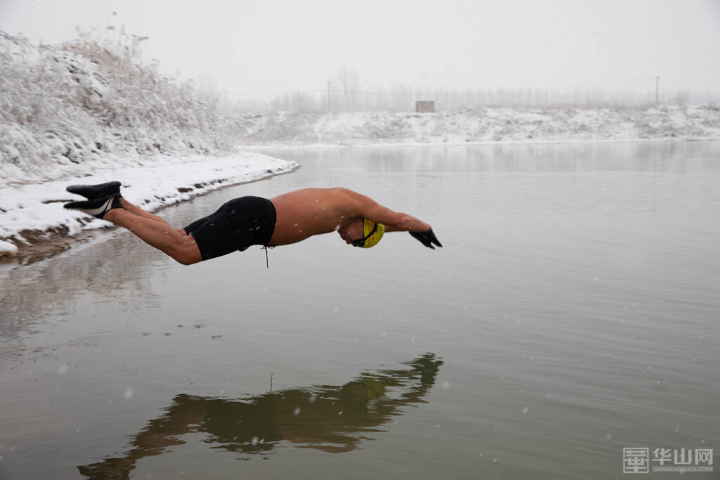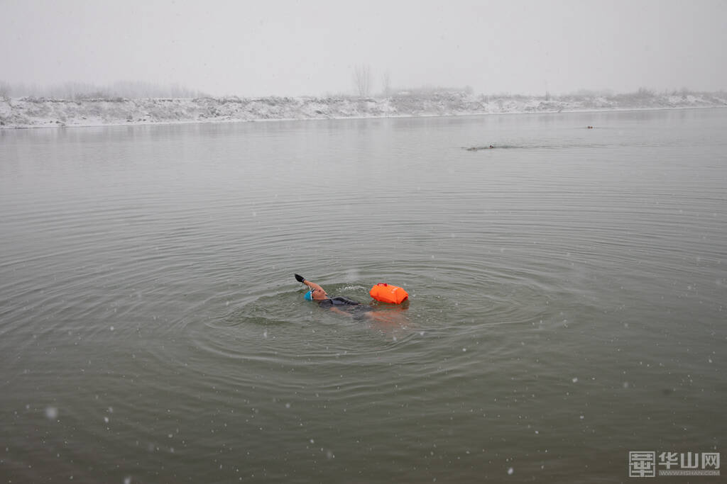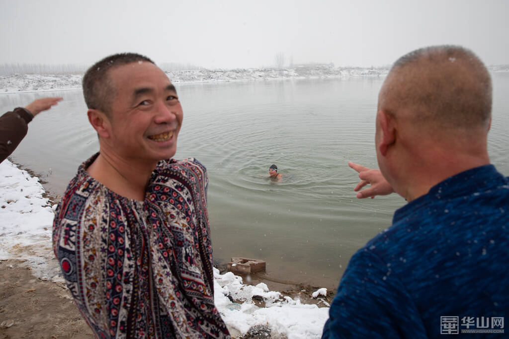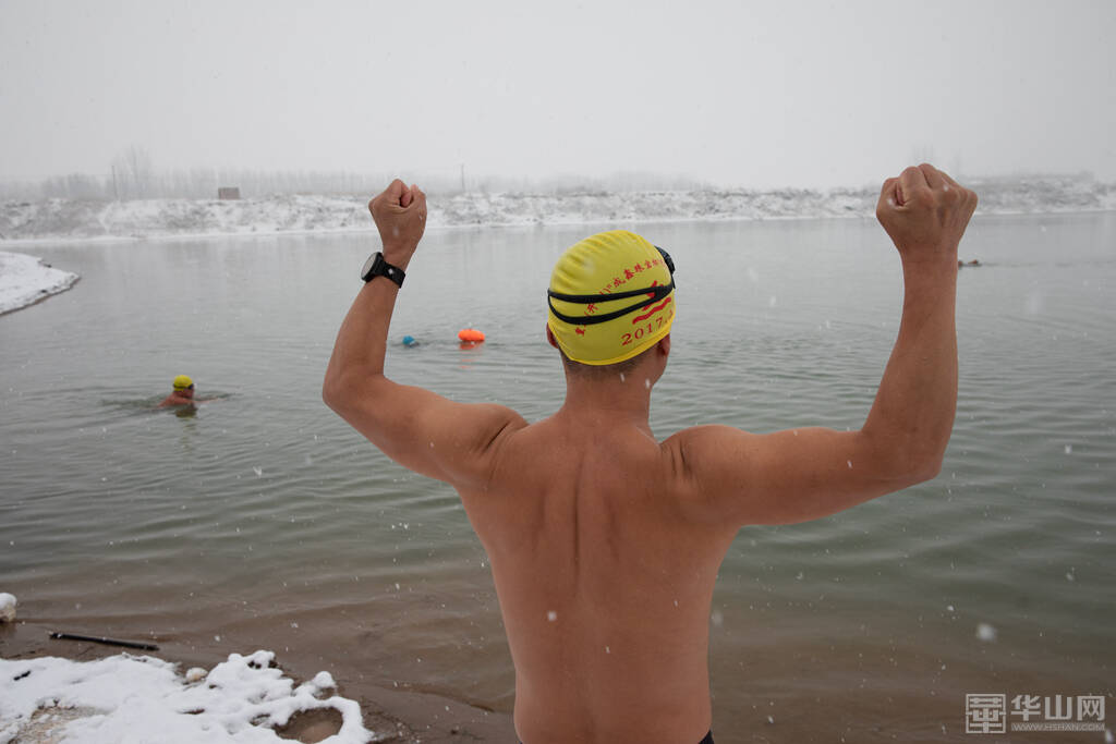 1月16日下午,渭南大雪纷飞,室外的气温已经降到了零下,而在渭河河畔一处沙坑形成的水面上,一群冬泳爱好者却热情高涨,他们脱去外衣,穿着泳衣泳裤做着下水前的准备活动,轮番跃入冰冷刺骨的水中,不断激起的水花驱散了冬日的严寒。
