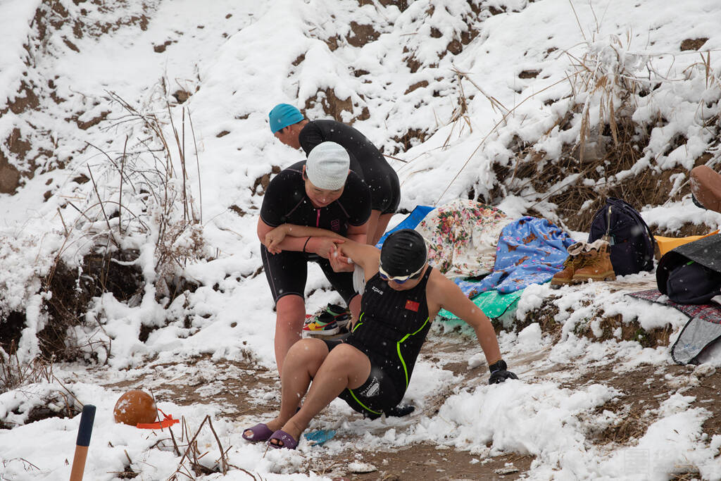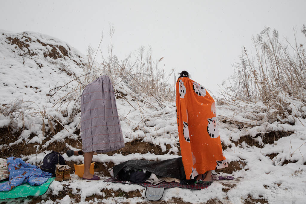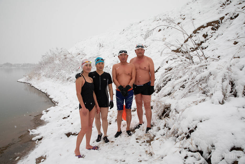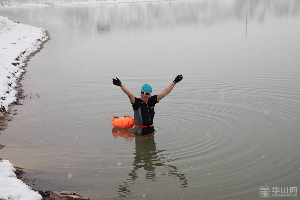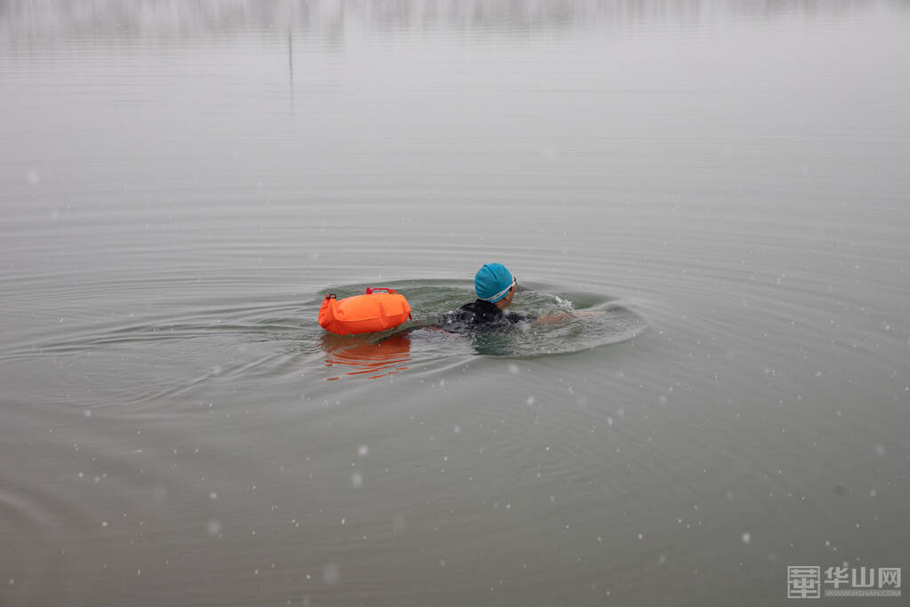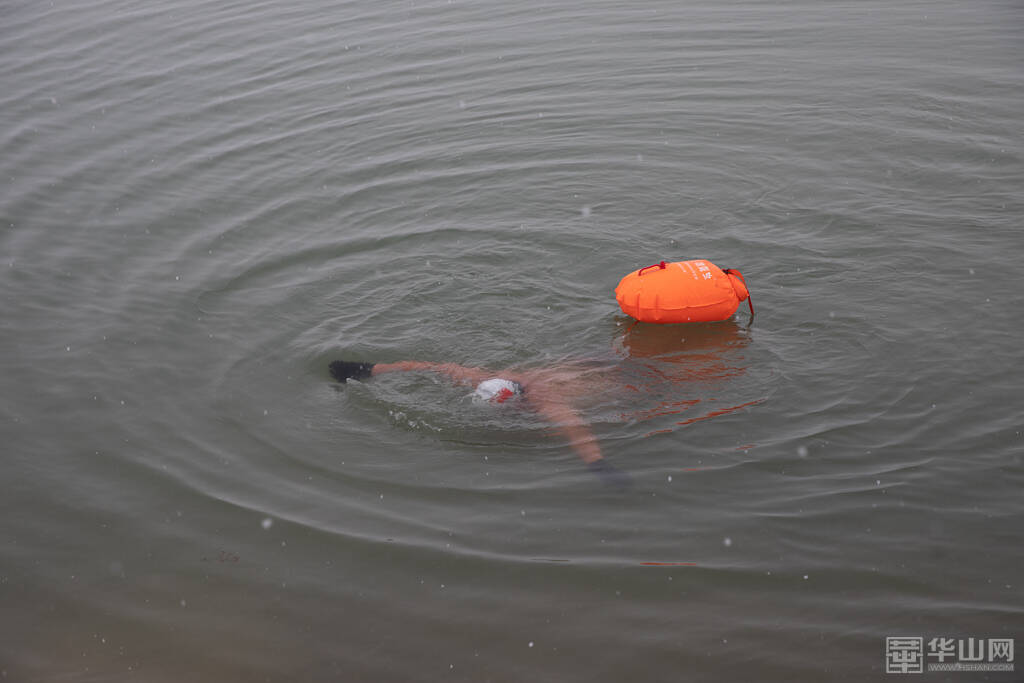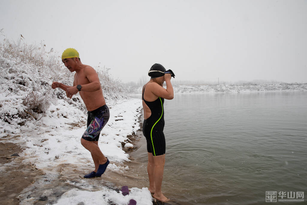 1月16日下午,渭南大雪纷飞,室外的气温已经降到了零下,而在渭河河畔一处沙坑形成的水面上,一群冬泳爱好者却热情高涨,他们脱去外衣,穿着泳衣泳裤做着下水前的准备活动,轮番跃入冰冷刺骨的水中,不断激起的水花驱散了冬日的严寒。