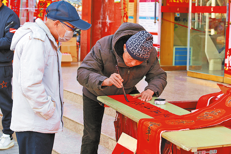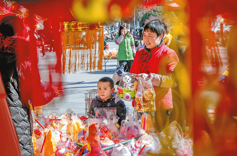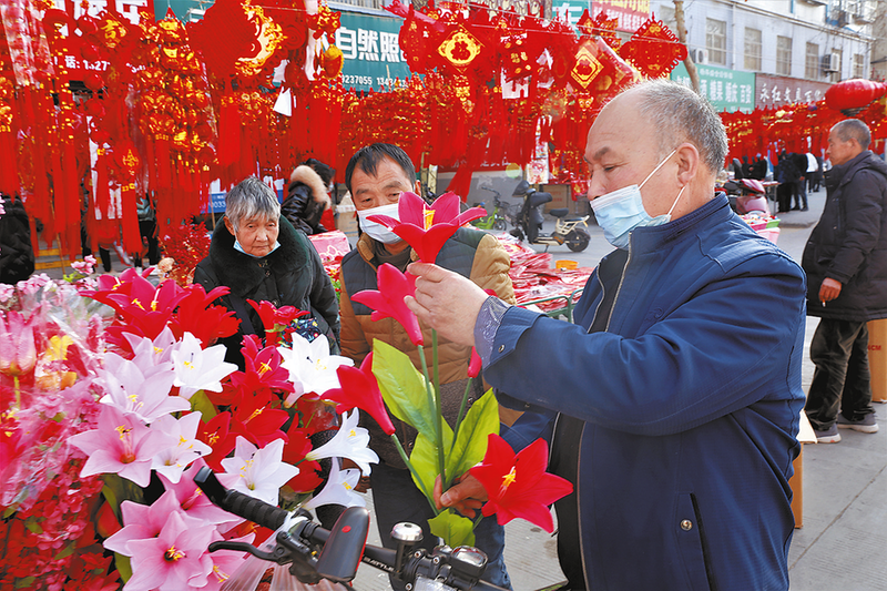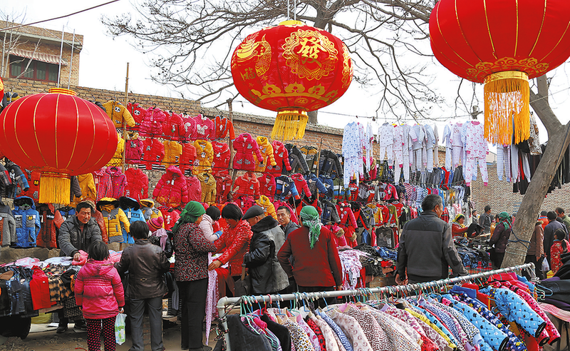 赶集的人们,或割肉,或扯布,或买衣服,或买玩具,人人充满欢喜和期待。特别是那些大红灯笼、中国结、春联等喜庆的新年饰品,更受青睐。