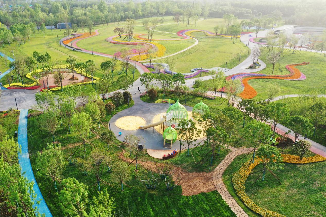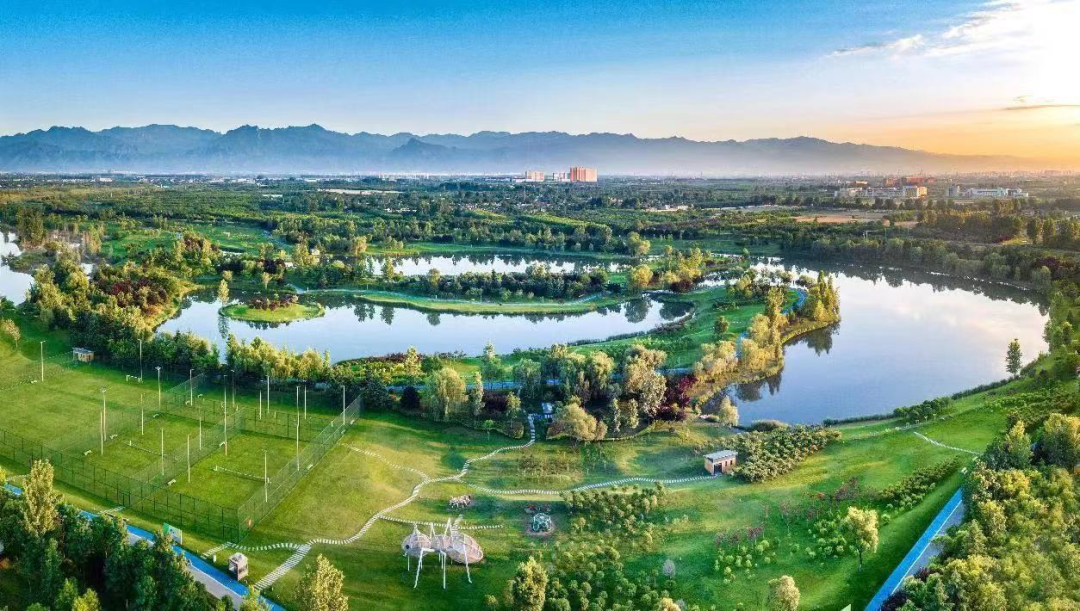 丝路科学城依托秦岭生态屏障,围绕沣河、潏河、太平峪河等九条河流,利用仪祉湖、和迪水库等湖泊,构筑十条生态绿廊,形成了“九水聚心”的蓝绿体系框架,先后建成了永安渠海绵生态公园、大仁遗址公园、仪祉湖水利风景区等高品质公园和多个口袋公园,让“三分钟见绿、五分钟进园”的美好生活体验在中央创新区实现。