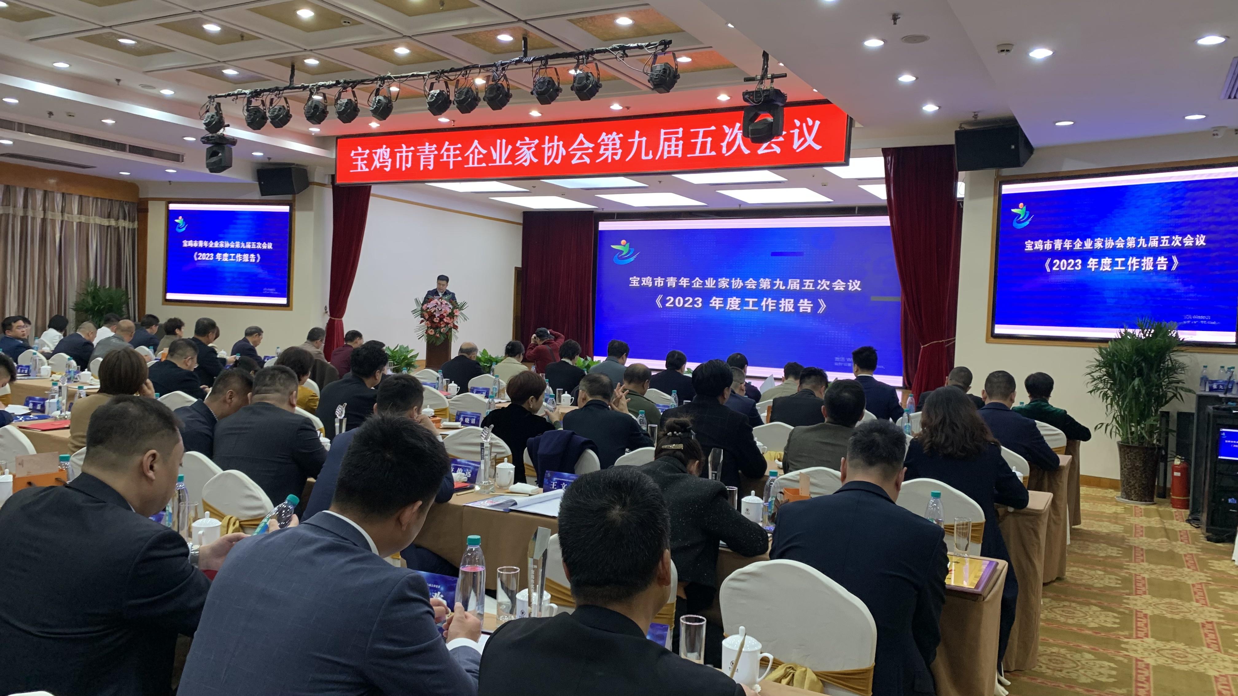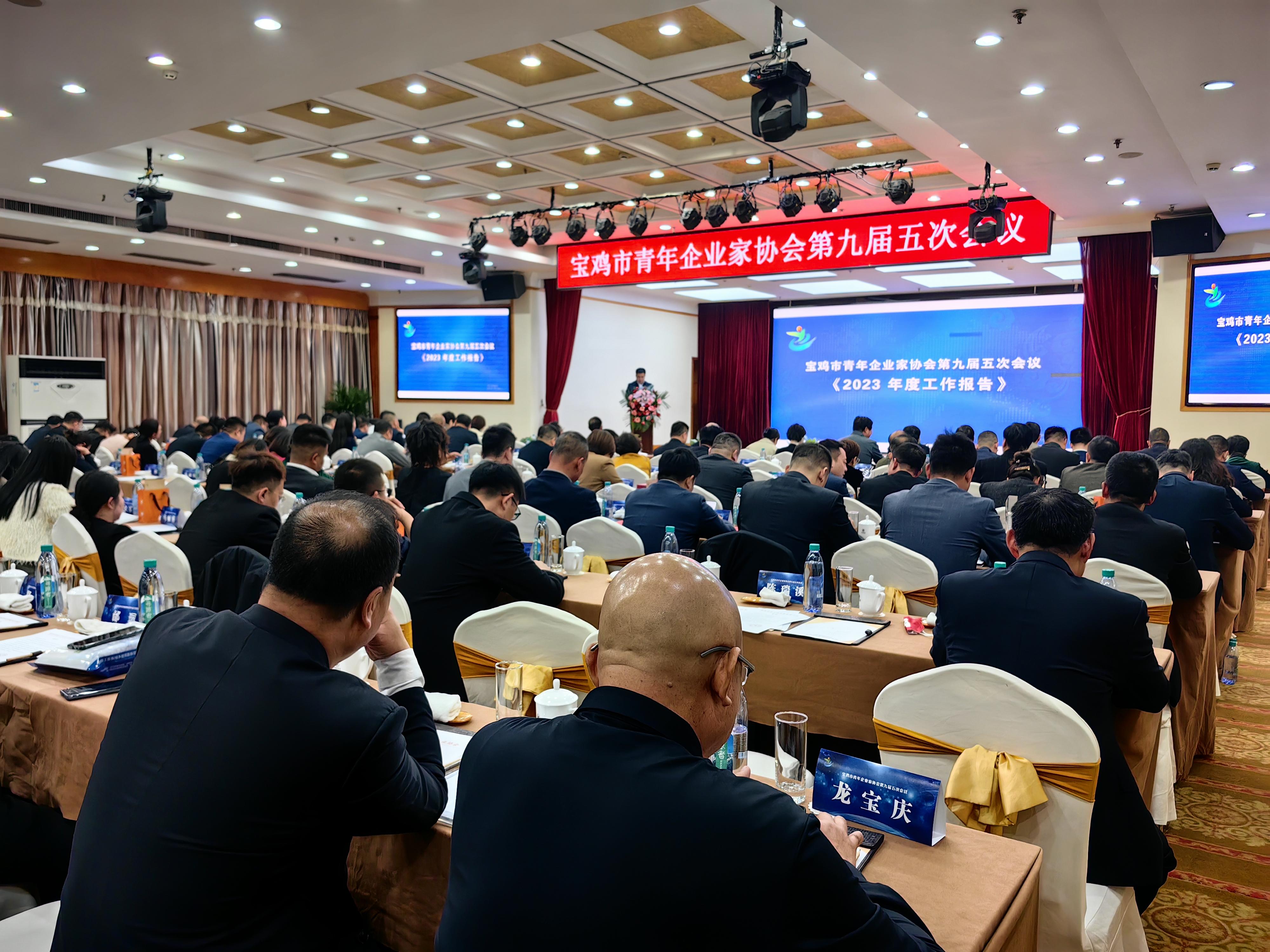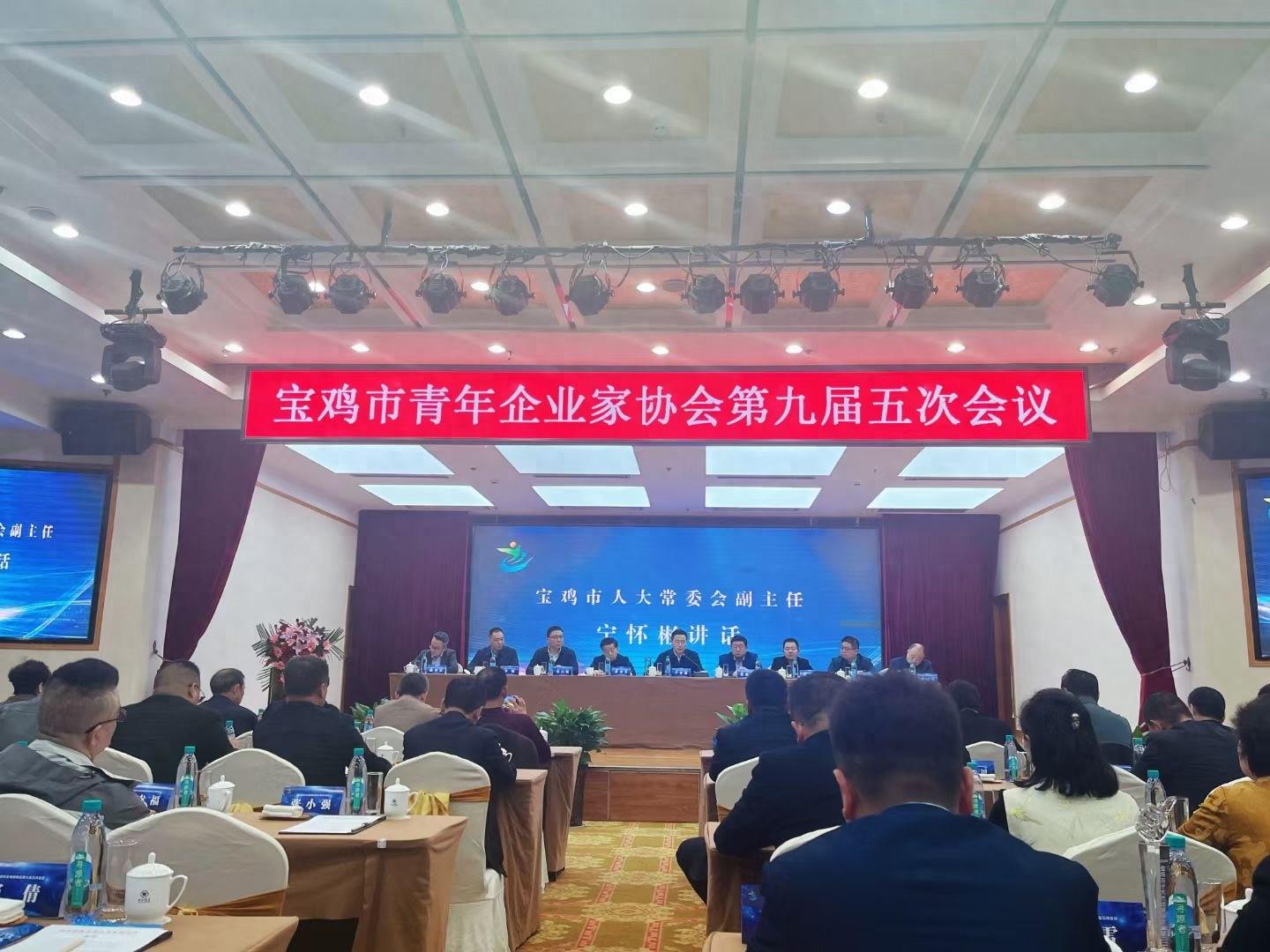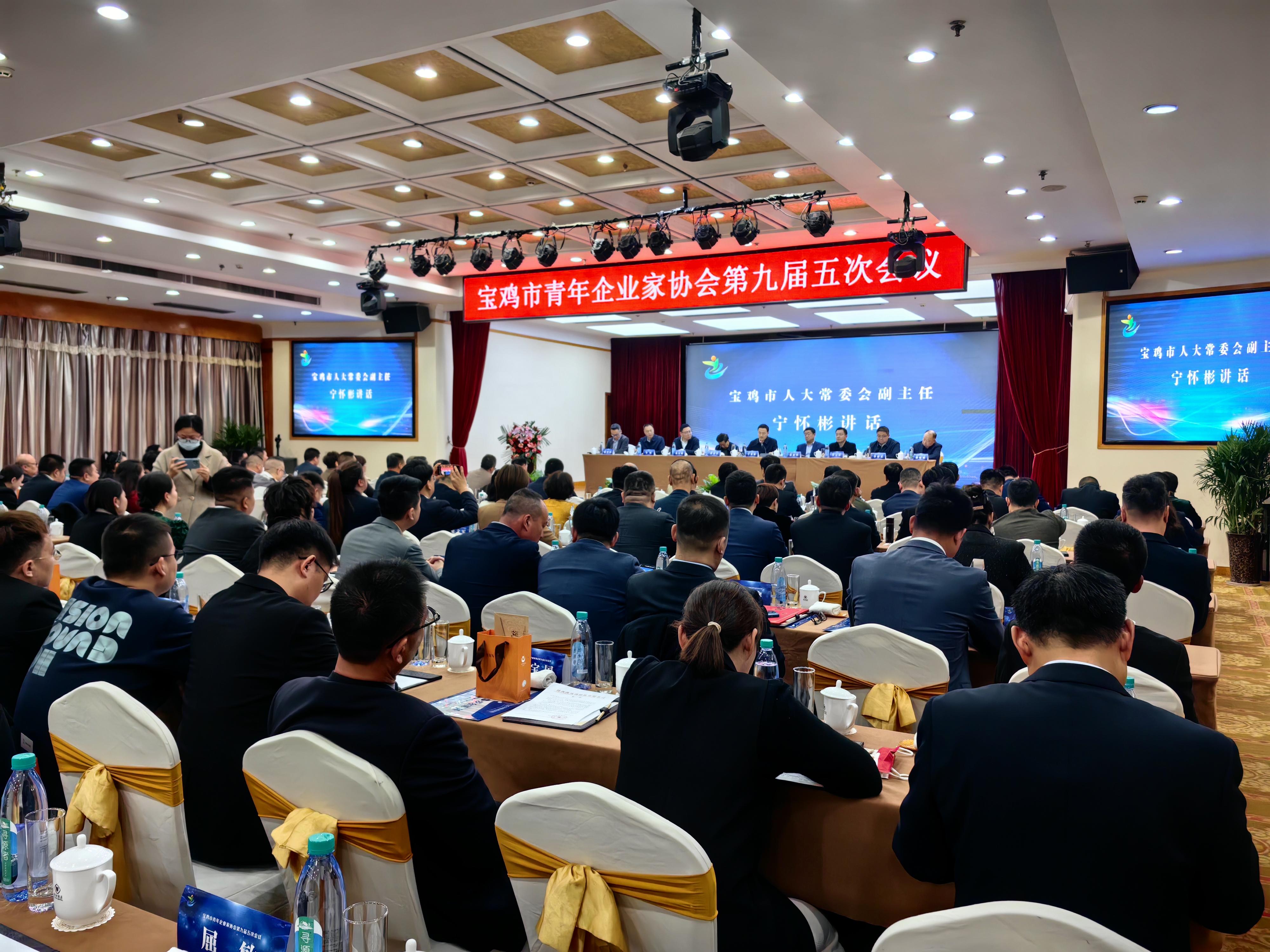 3月22日,宝鸡市第九届青年企业家协会第五次年度总结表彰大会在宝鸡怡和酒店隆重举行,宝鸡市人大常委会副主任宁怀彬、宝鸡市政协副主席张新科、宝鸡市人大常委会原副主任乔春芳、省青企协副会长陈智慧、共青团宝鸡市委副书记刘汉朋、共青团宝鸡市委副书记李裕熹、市工商联副主席李朝、渭滨区政协主席李元祥、省青企协原副会长、党支部书记郝小刚等全市各企业、团体、友好协会和各县区青年企业家协会、新生代青年企业家代表,以及宝鸡市青年企业家协会会长、副会长、监事及会员、中省市媒体等300多人出席了会议。