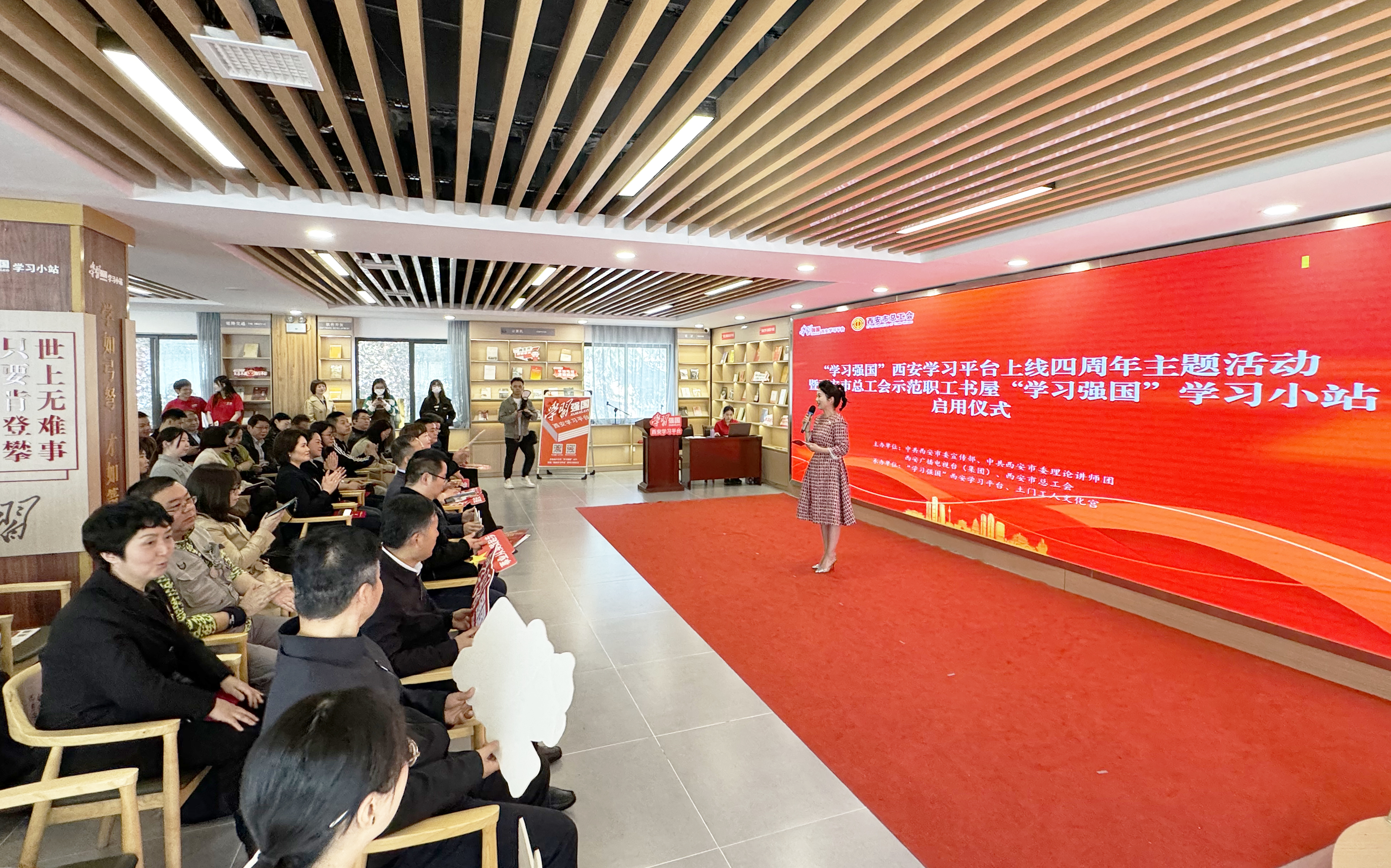 春和景明,万象更新。3月29日,由西安市委宣传部、西安市委理论讲师团、西安广播电视台(集团)、西安市总工会主办,“学习强国”西安学习平台承办的“学习强国”西安学习平台上线四周年主题活动暨西安市总工会示范职工书屋“学习强国”学习小站启用仪式成功举办。