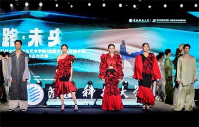 此次,该校2024届服装与服饰设计专业毕业生历时半年,深入企业调研实习,搜集丝路沿线传统文化元素,提取区域文化特色,凝练文化符号,最终完成了35个系列共175套服装设计作品。